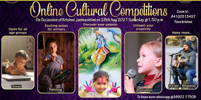 It is pleasing and very exciting to inform all children age group 5-10 years, we are conducting an Online Cultural Competitions on Occasion of coming Krishna Janmashtmi.